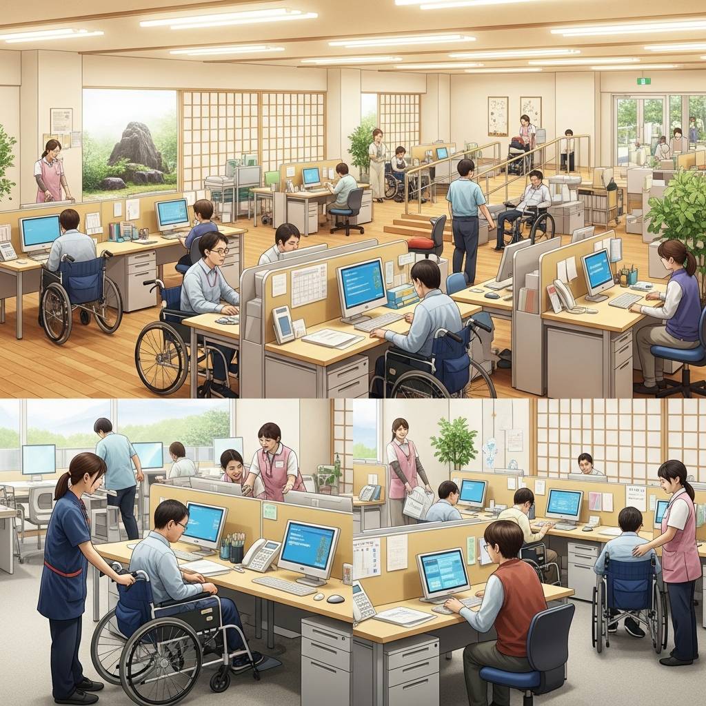 具体的には、障害特性に合わせた作業環境の整備から始まった。自閉症の方には視覚的に分かりやすい作業手順書を用意し、音に敏感な方のために防音室を設置。車椅子の利用者のために、すべての動線をバリアフリー化している。